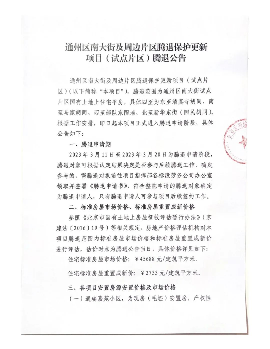通州區(qū)南大街及周邊片區(qū)騰退保護更新項目(試點片區(qū))(以下簡稱“本項目”),騰退范圍為通州區(qū)南大街試點片區(qū)國有土地上住宅平房,具體四至為東至清真寺胡同、南至馬家胡同、西至部隊東圍墻、北至新華東街(回民胡同)根據(jù)工作安排,即日起本項目正式進入騰退申請階段,具體公告如下: