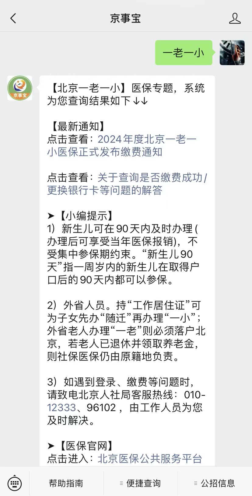 溫馨提示:關(guān)注【大京事】微信公眾平臺,可及時獲取最新北京市一老一小醫(yī)保繳費入口、參保人資格條件、報銷指南、定點醫(yī)院更改等政策及常見問題答疑。