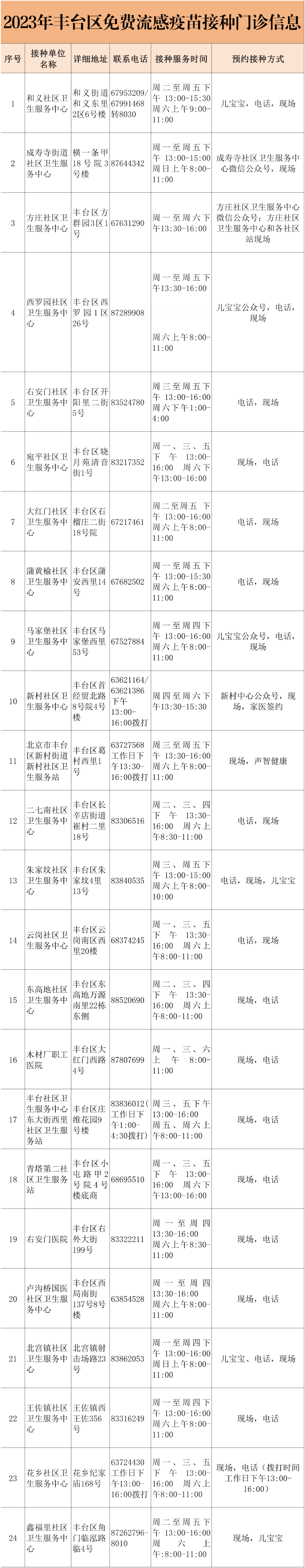 北京豐臺區流感疫苗接種門診服務時間公示來了,具體事宜可咨詢接種門診