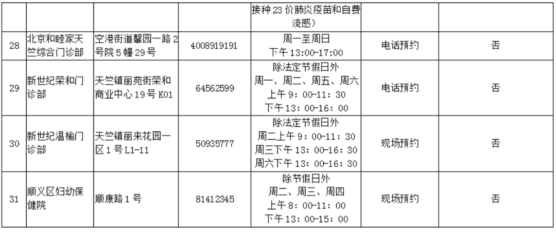 北京順義區流感疫苗接種門診服務時間公示來了,具體事宜可咨詢接種門診