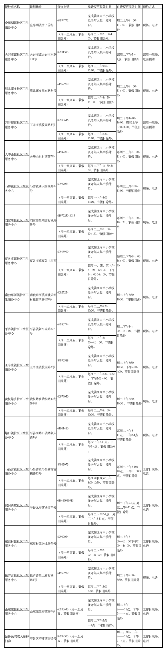 北京平谷區(qū)流感疫苗接種門診服務時間公示來了,具體事宜可咨詢接種門診
